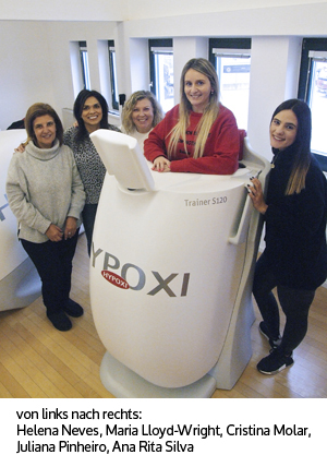Darüber hinaus wurde das Team des HYPOXI-Studio Porto von der Internationalen Mastertrainerein Maria Lloyd-Wright ausgebildet um neben den klassischen HYPOXI-Intensiv- und Erhaltungsprogrammen auch ein HYPOXI-Training für Lipödem-Betroffene anzubieten.